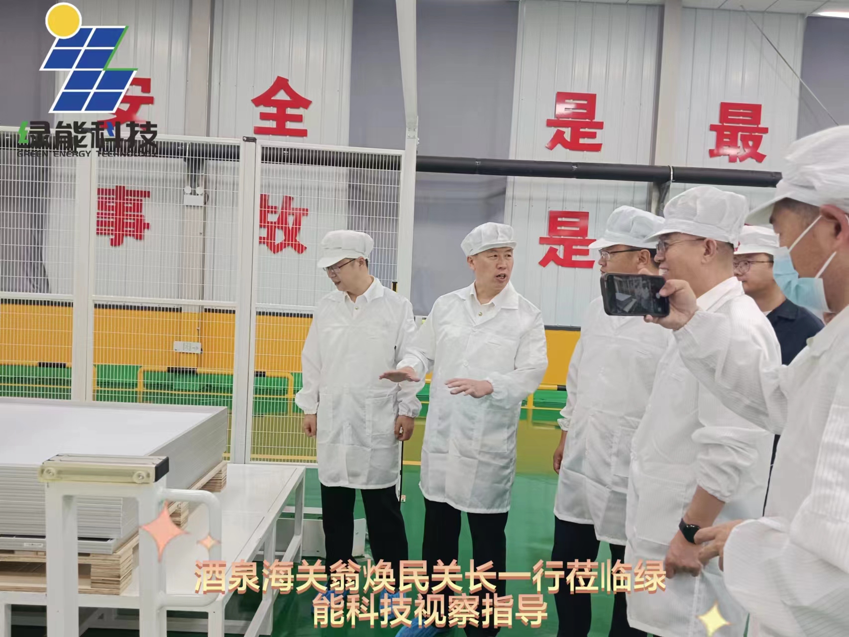2023年7月22日酒泉海關(guān)翁煥民關(guān)長一行蒞臨綠能科技視察指導(dǎo)工作,對酒泉綠能科技裝備公司投產(chǎn)建設(shè)速度給予高度評價。實地查看光伏組件車間生產(chǎn)情況和電線電纜車間生產(chǎn)情況,對公司生產(chǎn)能力和運營情況做了深入研究。表示今后將大力支持新能源企業(yè)走出去,積極開拓國外市場。